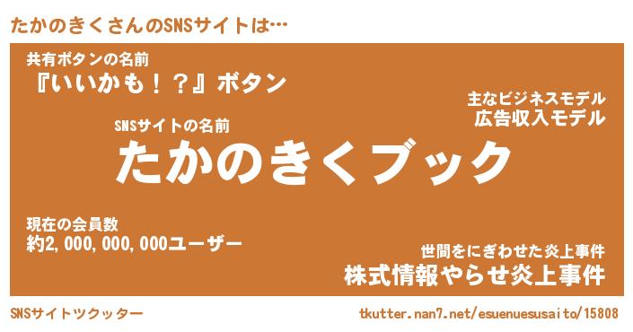 | 肩書あだ名 | 『たかのきくCEO』『たかのきく大統領』 |