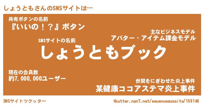 | 男性向けラノベタイトル風あだ名 | 『ショウトモアートオンライン』 |