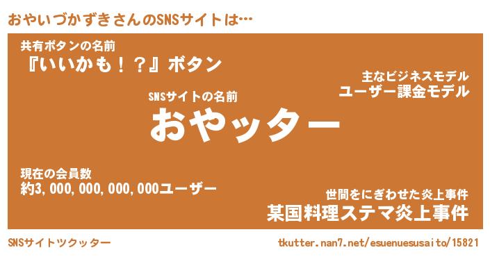 | 胡散臭い通販商品みたいなあだ名 | 『億万長者になれる霊験あらたかなお札…その名も「おやいづかずき」』 |