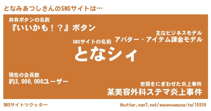 | 男性向けラノベタイトル風あだ名 | 『となみあつしの憂鬱』 |