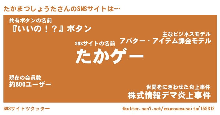 | ヒーロー風カッコイイあだ名 | 『スーパータカマツショウタ』 |