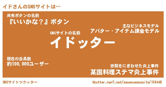 | ヘコむあだ名 | 『イドふぇ~』『なまこ酢』『イドを』 |