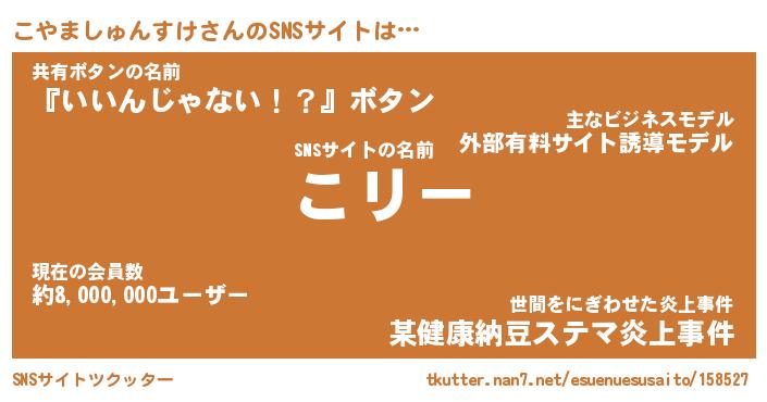 | 男性向けラノベタイトル風あだ名 | 『こやましゅんすけの憂鬱』 |