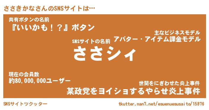 | ヒーロー風カッコイイあだ名 | 『スーパーササキカナ』『暗黒騎士ササ』 |