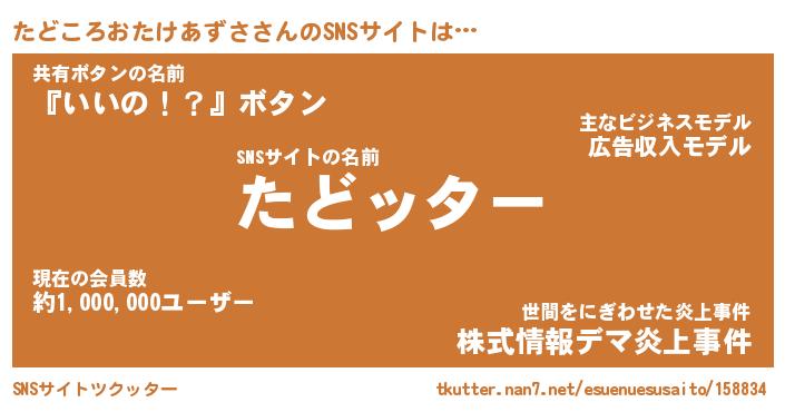 | ヘコむあだ名 | 『たどにゅー』『なまこ酢』 |