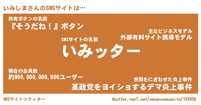 | 胡散臭い通販商品みたいなあだ名 | 『億万長者になれる水晶球…その名も「いみしま」』 |