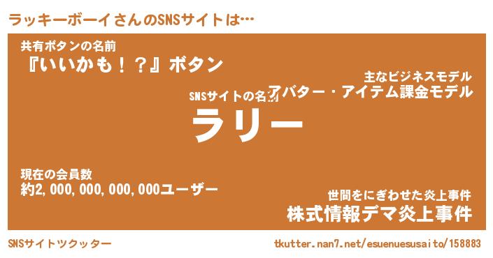| 肩書あだ名 | 『ラッキーボーイ社長』 |