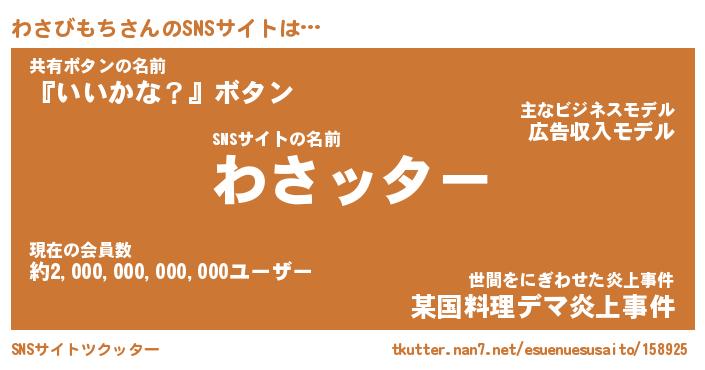 | ポケモン風あだ名 | 『ワサチュウ』『ワサビダネ』 |