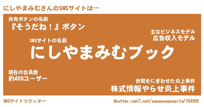 | 肩書あだ名 | 『にしやまみむ御曹司』 |
