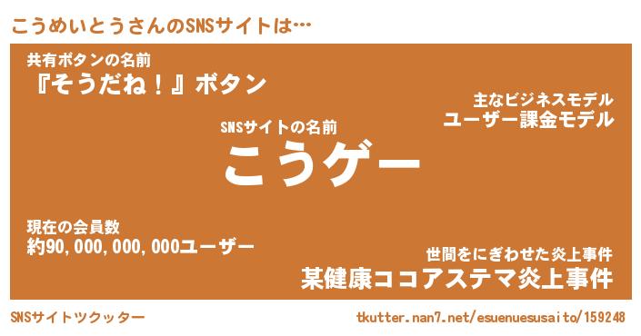 | 肩書あだ名 | 『こうめいとう御曹司』 |
