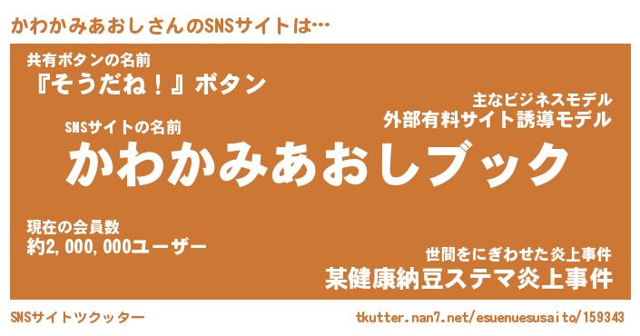 | 欧米人風あだ名 | 『マイケルかわかみあおし』 |