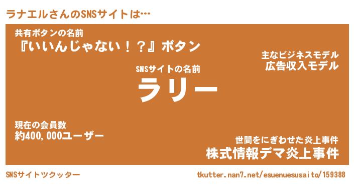 | 意味不明あだ名 | 『ペロリンラナエル』『永久保存ラナエル』 |