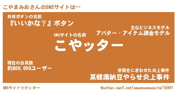 | 肩書あだ名 | 『こやまみおCEO』『こやまみお大統領』 |
