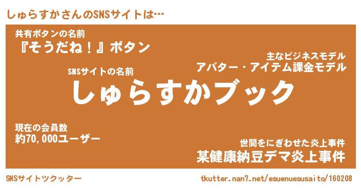 | 胡散臭い通販商品みたいなあだ名 | 『億万長者になれるブレスレット…その名も「しゅらすか」』 |