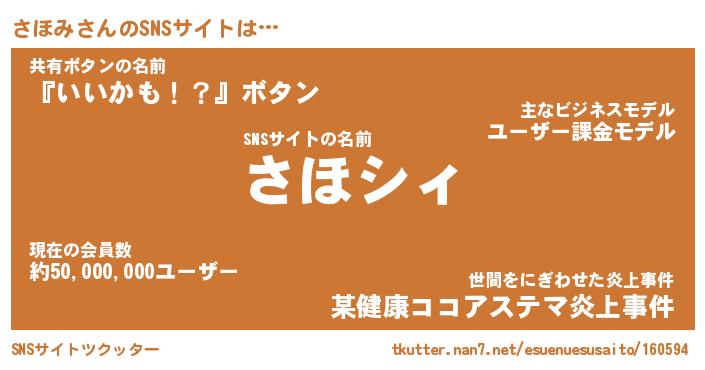 | ヘコむあだ名 | 『さほにゅー』『酢こんぶ』『さほを』 |