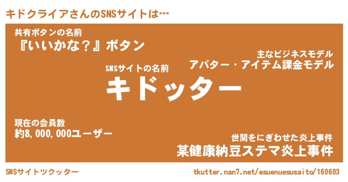 | ヘコむあだ名 | 『キドにー』『なまこ酢』『キド太郎』 |