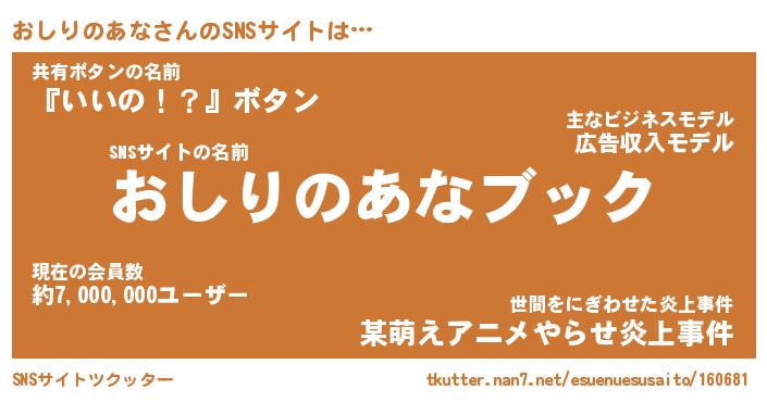 | 男性向けラノベタイトル風あだ名 | 『オシリノアナアートオンライン』 |