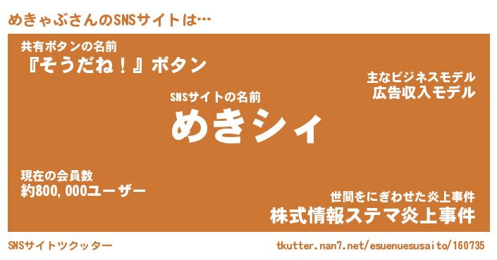 | ヘコむあだ名 | 『めきふぇ~』『つくし』『めきお』 |