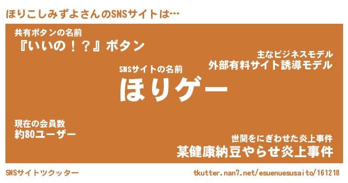 | ヘコむあだ名 | 『ほりもー』『なまこ酢』『ほりっ子』 |