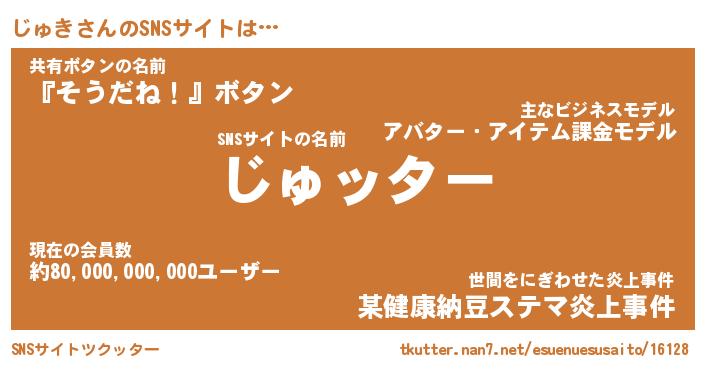 | 胡散臭い通販商品みたいなあだ名 | 『億万長者になれるブレスレット…その名も「じゅき」』 |