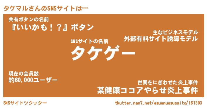 | ファンタジー風あだ名 | 『タケフェル』『エターナルタケマルー』 |