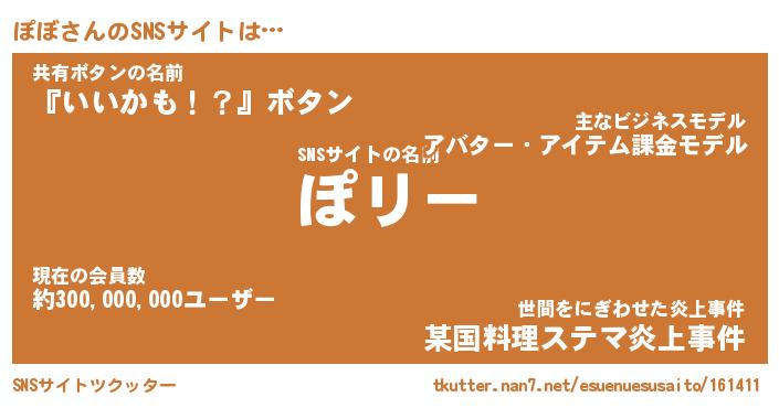 | ヘコむあだ名 | 『ぽぼにゅー』『なまこ酢』『ぽぼを』 |