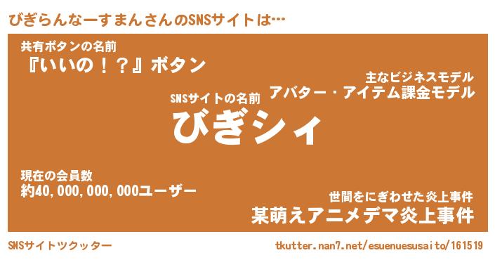 | 男性向けラノベタイトル風あだ名 | 『びぎらんなーすまんの憂鬱』 |