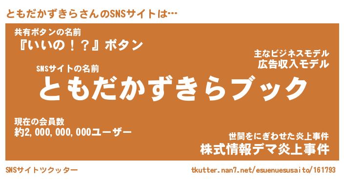 | 胡散臭い通販商品みたいなあだ名 | 『億万長者になれる霊験あらたかなお札…その名も「ともだかずきら」』 |