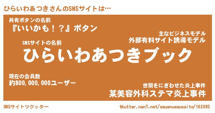 | 胡散臭い通販商品みたいなあだ名 | 『億万長者になれる水晶球…その名も「ひらいわあつき」』 |