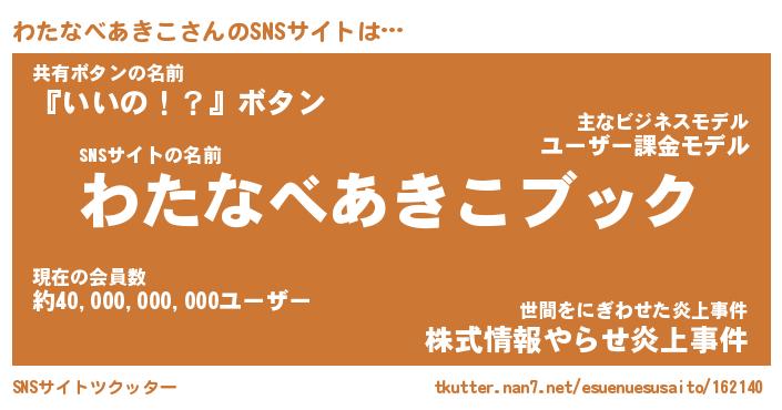 | 胡散臭い通販商品みたいなあだ名 | 『億万長者になれるブレスレット…その名も「わたなべあきこ」』 |
