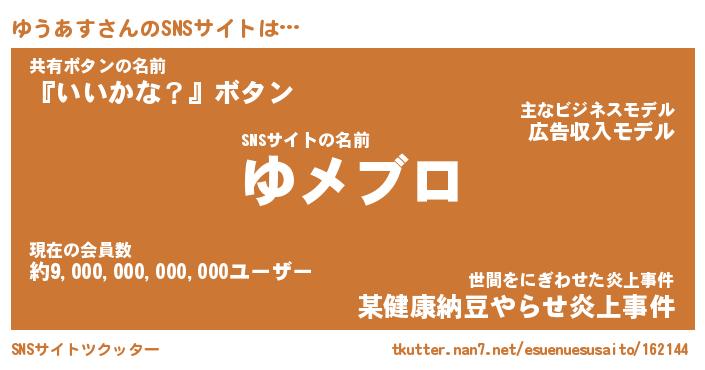 | 意味不明あだ名 | 『ペロリンゆうあす』『永久保存ゆうあす』 |