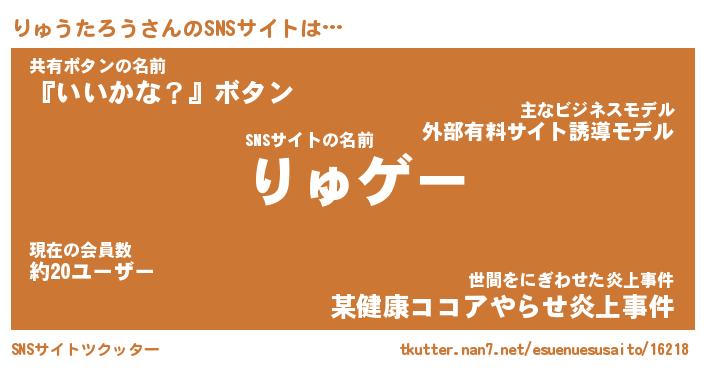 | 男性向けラノベタイトル風あだ名 | 『りゅうたろうの憂鬱』 |