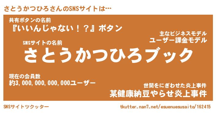 | 胡散臭い通販商品みたいなあだ名 | 『億万長者になれる霊験あらたかなお札…その名も「さとうかつひろ」』 |