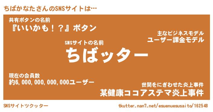 | 胡散臭い通販商品みたいなあだ名 | 『億万長者になれるブレスレット…その名も「ちばかなた」』 |