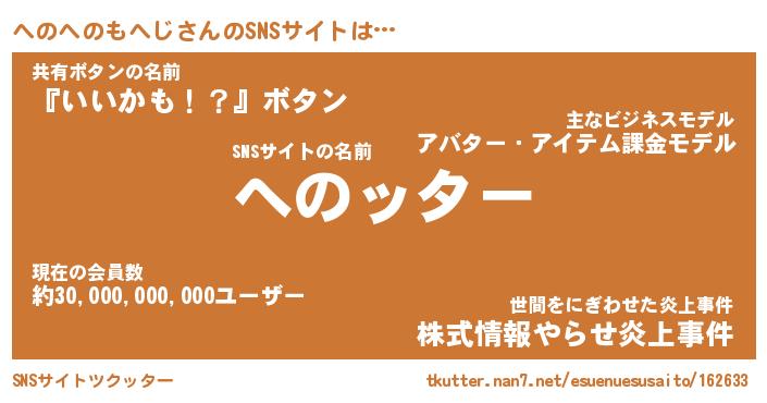 | 胡散臭い通販商品みたいなあだ名 | 『億万長者になれるブレスレット…その名も「へのへのもへじ」』 |