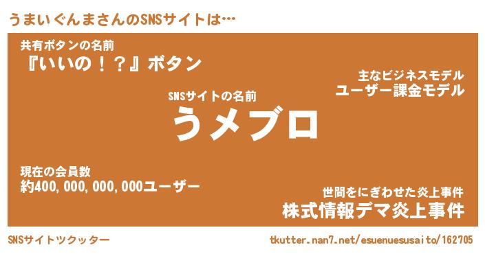 | 男性向けラノベタイトル風あだ名 | 『ウマイグンマアートオンライン』 |