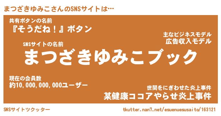 | 胡散臭い通販商品みたいなあだ名 | 『億万長者になれるブレスレット…その名も「まつざきゆみこ」』 |