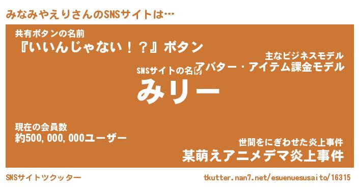 | 肩書あだ名 | 『みなみやえり御曹司』 |