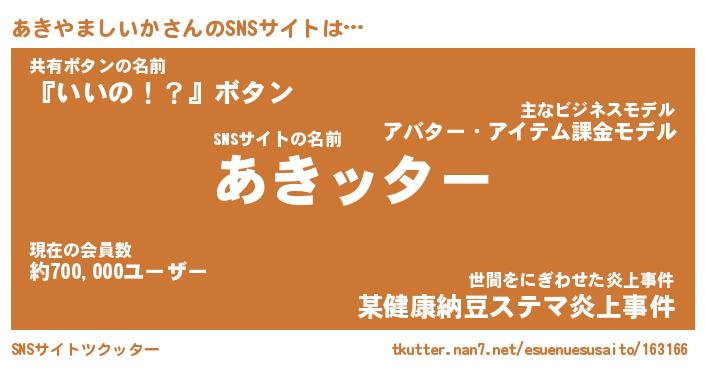 | ヘコむあだ名 | 『あきふぇ~』『酢こんぶ』『あきお』 |