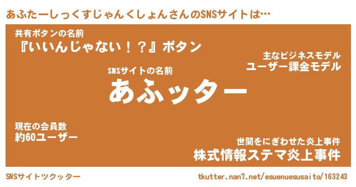 | 胡散臭い通販商品みたいなあだ名 | 『億万長者になれるブレスレット…その名も「あふたーしっくすじゃんくしょん」』 |