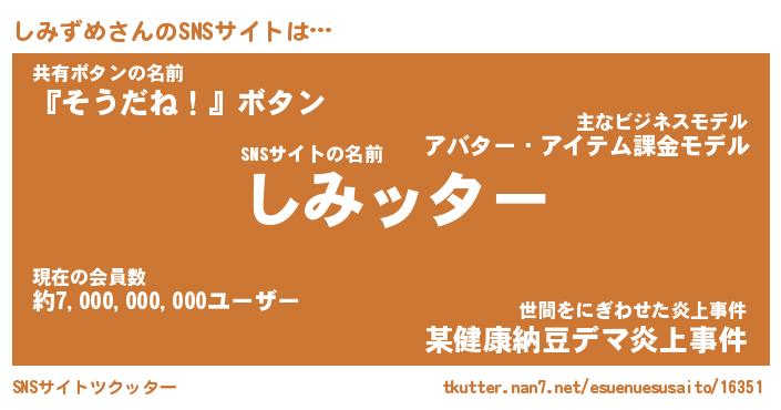 | 胡散臭い通販商品みたいなあだ名 | 『億万長者になれる霊験あらたかなお札…その名も「しみずめ」』 |