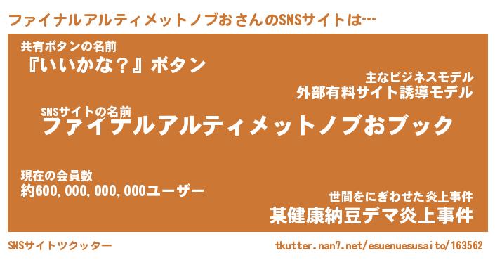 | 肩書あだ名 | 『ファイナルアルティメットノブお御曹司』 |