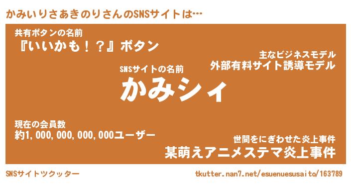| 男性向けラノベタイトル風あだ名 | 『かみいりさあきのりの憂鬱』 |