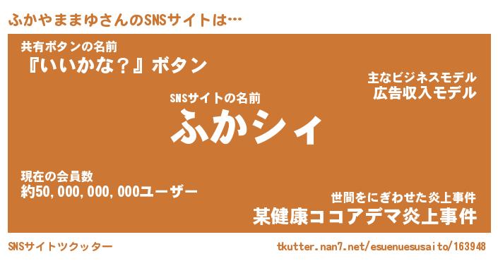| ポケモン風あだ名 | 『フカチュウ』『フカヤダネ』 |