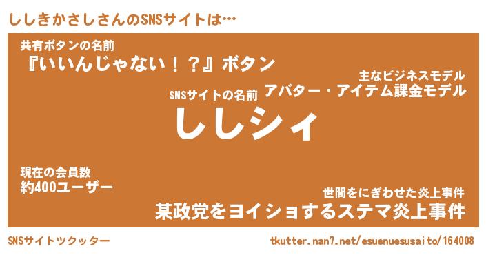 | ヘコむあだ名 | 『ししもー』『酢こんぶ』『ししを』 |