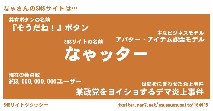 | ヘコむあだ名 | 『なゃにー』『酢こんぶ』『なゃ(笑)』 |