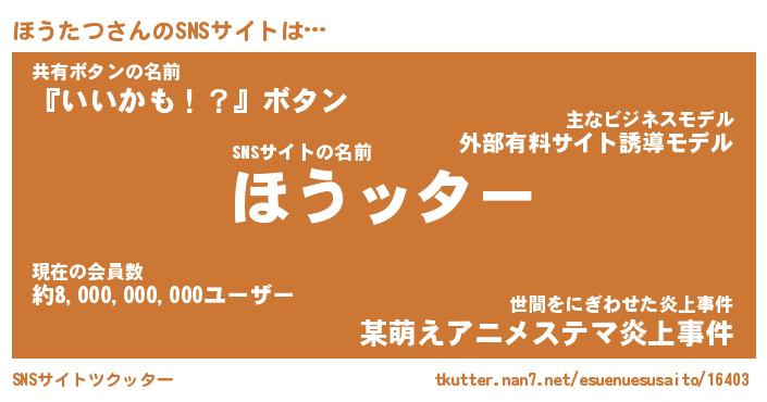 | 草はえルンゴwww …「ツクッター」 | 12月29日 07:12 |