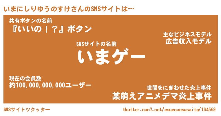 | 肩書あだ名 | 『いまにしりゆうのすけ店長』 |