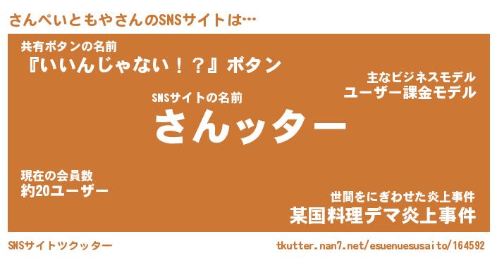 | 肩書あだ名 | 『さんぺいともや御曹司』 |