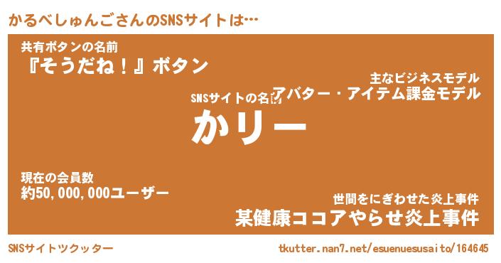 | 肩書あだ名 | 『かるべしゅんご御曹司』 |